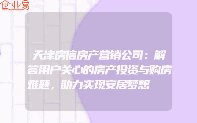 - 天津房信房产营销公司:解答用户关心的房产投资与购房难题,助力实现安居梦想