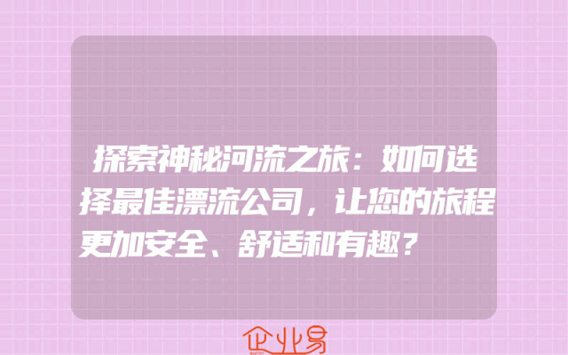 - 探索神秘河流之旅:如何选择最佳漂流公司,让您的旅程更加安全、舒适和有趣?