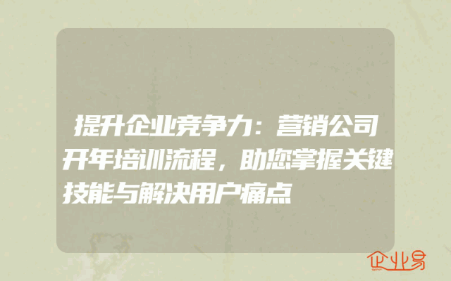 - 提升企业竞争力:营销公司开年培训流程,助您掌握关键技能与解决用户痛点