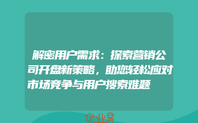 - 解密用户需求:探索营销公司开盘新策略,助您轻松应对市场竞争与用户搜索难题