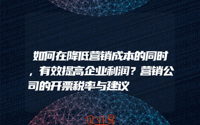 - 如何在降低营销成本的同时,有效提高企业利润?营销公司的开票税率与建议