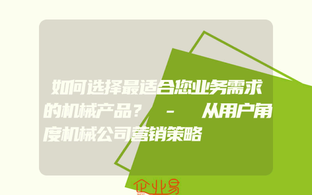 - 如何选择最适合您业务需求的机械产品? - 从用户角度机械公司营销策略