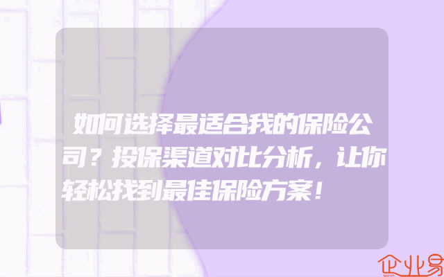 - 如何选择最适合我的保险公司?投保渠道对比分析,让你轻松找到最佳保险方案!