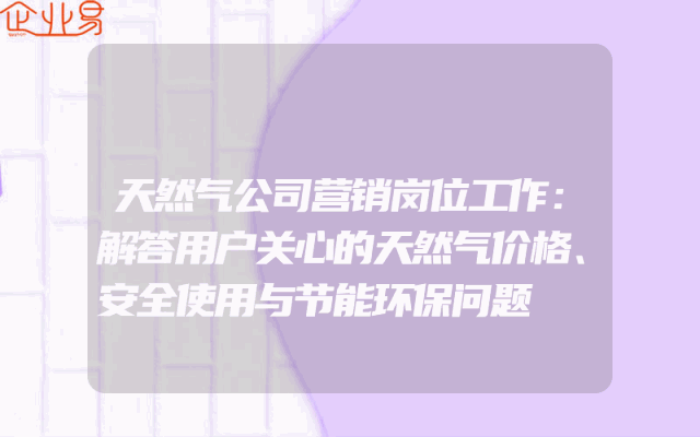 - 天然气公司营销岗位工作:解答用户关心的天然气价格、安全使用与节能环保问题