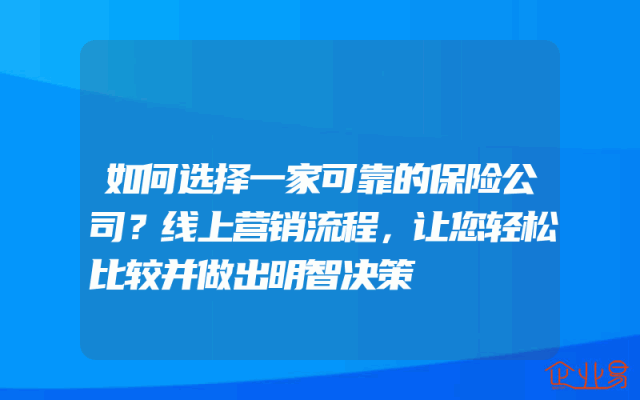- 如何选择一家可靠的保险公司?线上营销流程,让您轻松比较并做出明智决策