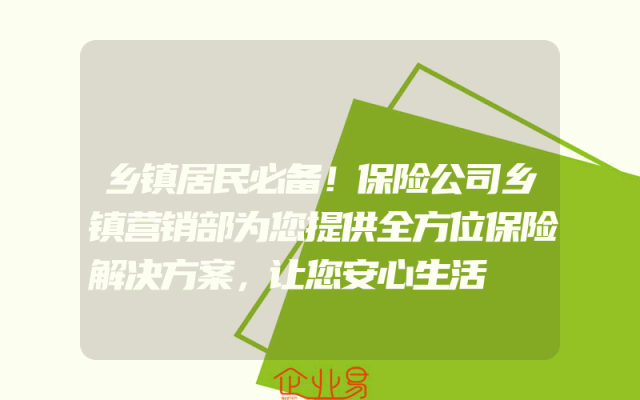 - 乡镇居民必备!保险公司乡镇营销部为您提供全方位保险解决方案,让您安心生活