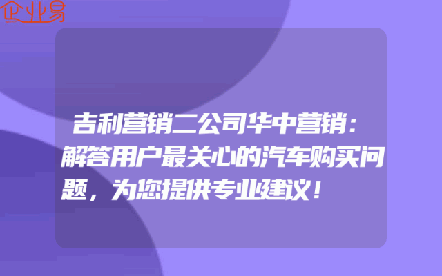 - 吉利营销二公司华中营销:解答用户最关心的汽车购买问题,为您提供专业建议!