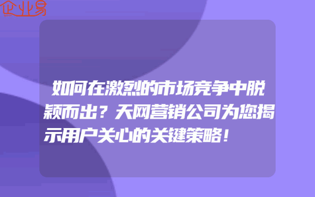 - 如何在激烈的市场竞争中脱颖而出?天网营销公司为您揭示用户关心的关键策略!