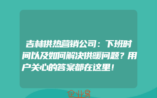 - 吉林供热营销公司:下班时间以及如何解决供暖问题?用户关心的答案都在这里!