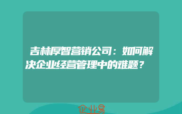 - 吉林厚智营销公司:如何解决企业经营管理中的难题?