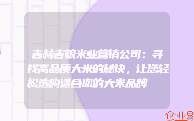 - 吉林吉粮米业营销公司:寻找高品质大米的秘诀,让您轻松选购适合您的大米品牌