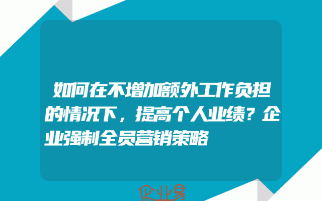 - 如何在不增加额外工作负担的情况下,提高个人业绩?企业强制全员营销策略