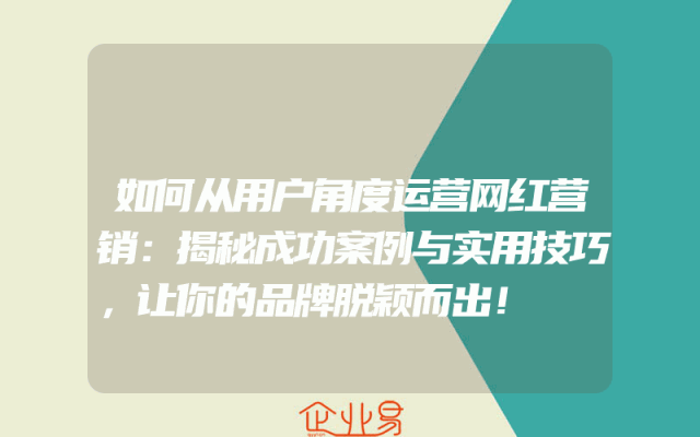 - 如何从用户角度运营网红营销:揭秘成功案例与实用技巧,让你的品牌脱颖而出!