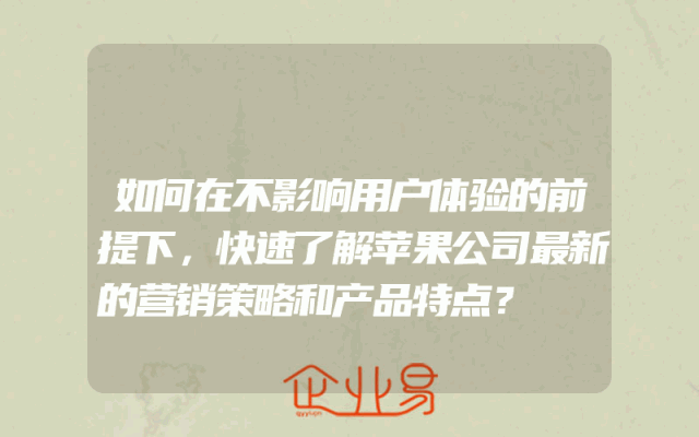 - 如何在不影响用户体验的前提下,快速了解苹果公司最新的营销策略和产品特点?