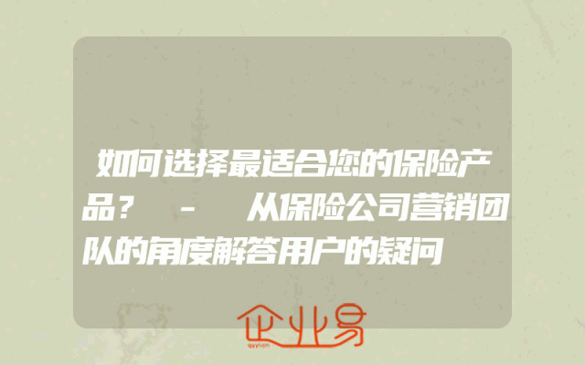 - 如何选择最适合您的保险产品? - 从保险公司营销团队的角度解答用户的疑问