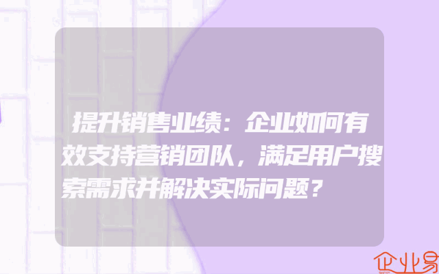 - 提升销售业绩:企业如何有效支持营销团队,满足用户搜索需求并解决实际问题?
