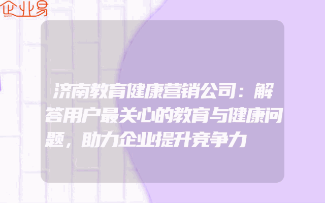 - 济南教育健康营销公司:解答用户最关心的教育与健康问题,助力企业提升竞争力