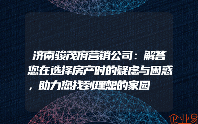 - 济南骏茂府营销公司:解答您在选择房产时的疑虑与困惑,助力您找到理想的家园