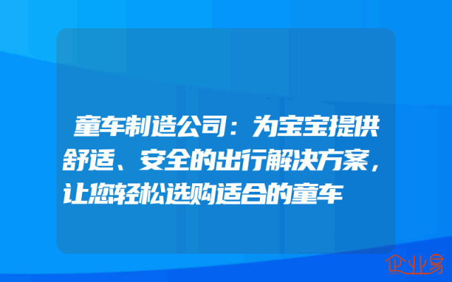 - 童车制造公司:为宝宝提供舒适、安全的出行解决方案,让您轻松选购适合的童车