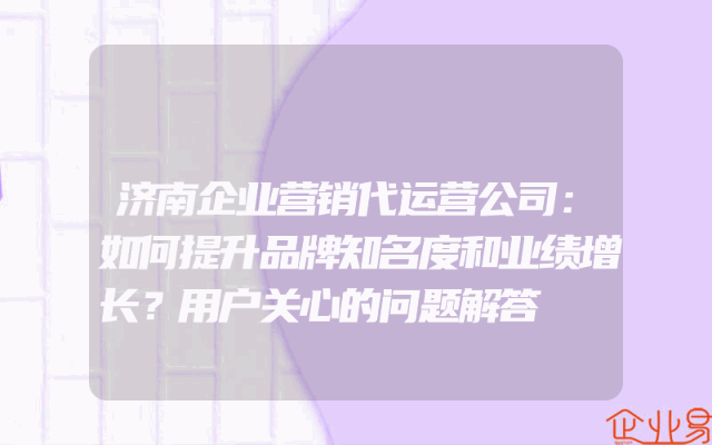 - 济南企业营销代运营公司:如何提升品牌知名度和业绩增长?用户关心的问题解答
