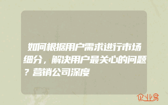 - 如何根据用户需求进行市场细分,解决用户最关心的问题?营销公司深度