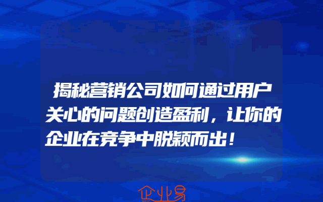 - 揭秘营销公司如何通过用户关心的问题创造盈利,让你的企业在竞争中脱颖而出!