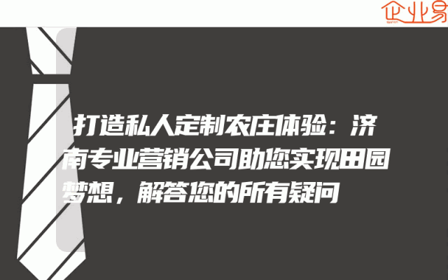 - 打造私人定制农庄体验:济南专业营销公司助您实现田园梦想,解答您的所有疑问