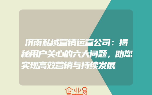- 济南私域营销运营公司:揭秘用户关心的六大问题,助您实现高效营销与持续发展