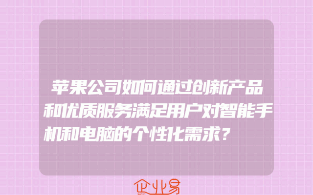 - 苹果公司如何通过创新产品和优质服务满足用户对智能手机和电脑的个性化需求?苹果公司作为全球领先的科技公司,一直以来都以其创新的产品和优质的服务赢得了消费者的广泛认可。在智能手机和电脑领域,苹果公司如何通过创新产品和优质服务满足用户的个性化需求