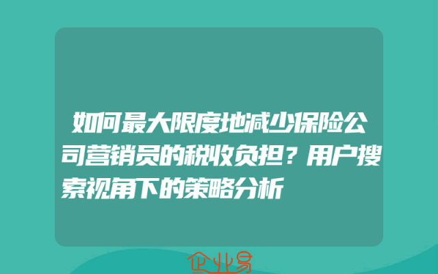 - 如何最大限度地减少保险公司营销员的税收负担?用户搜索视角下的策略分析