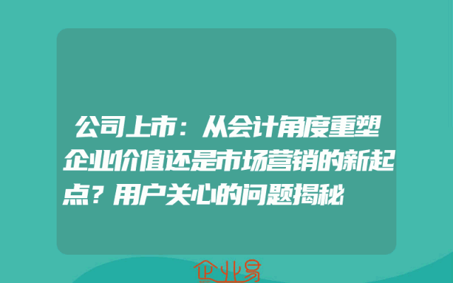 - 公司上市:从会计角度重塑企业价值还是市场营销的新起点?用户关心的问题揭秘