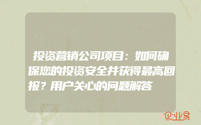 - 投资营销公司项目:如何确保您的投资安全并获得最高回报?用户关心的问题解答