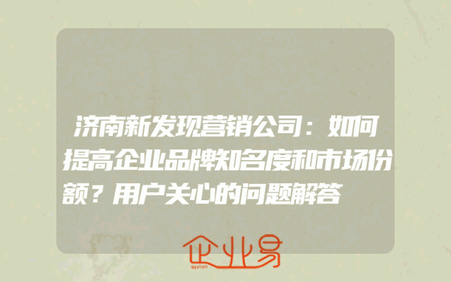 - 济南新发现营销公司:如何提高企业品牌知名度和市场份额?用户关心的问题解答
