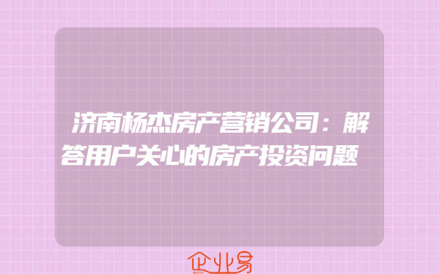 - 济南杨杰房产营销公司:解答用户关心的房产投资问题