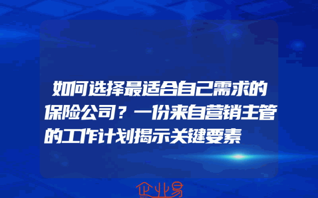 - 如何选择最适合自己需求的保险公司?一份来自营销主管的工作计划揭示关键要素