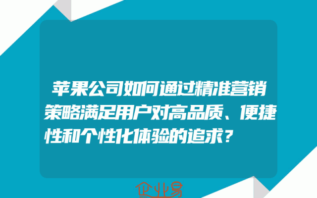 - 苹果公司如何通过精准营销策略满足用户对高品质、便捷性和个性化体验的追求?随着科技的发展和市场竞争的加剧,企业需要不断创新和优化产品和服务,以满足用户日益增长的需求。苹果公司作为全球知名的科技巨头,一直以其高品质的产品、便捷的使用体验和个性化