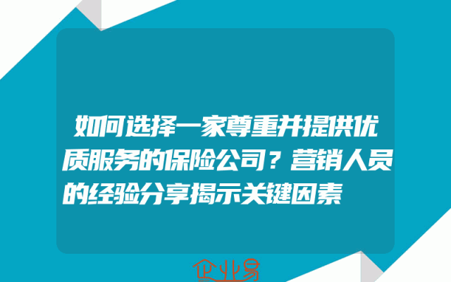 - 如何选择一家尊重并提供优质服务的保险公司?营销人员的经验分享揭示关键因素