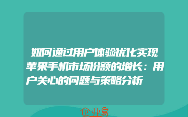 - 如何通过用户体验优化实现苹果手机市场份额的增长:用户关心的问题与策略分析