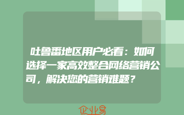 - 吐鲁番地区用户必看:如何选择一家高效整合网络营销公司,解决您的营销难题?