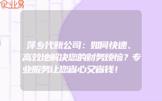 - 萍乡代账公司:如何快速、高效地解决您的财务烦恼?专业服务让您省心又省钱!