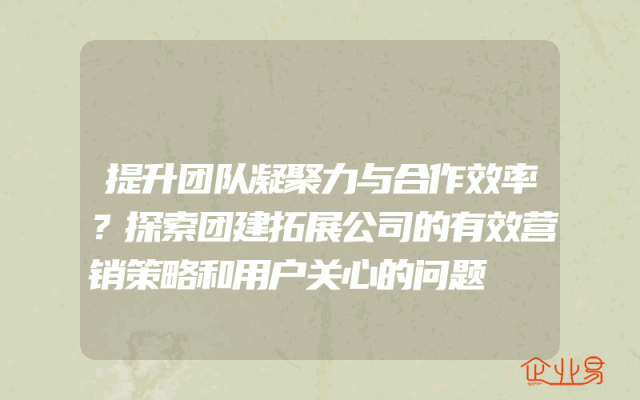 - 提升团队凝聚力与合作效率?探索团建拓展公司的有效营销策略和用户关心的问题