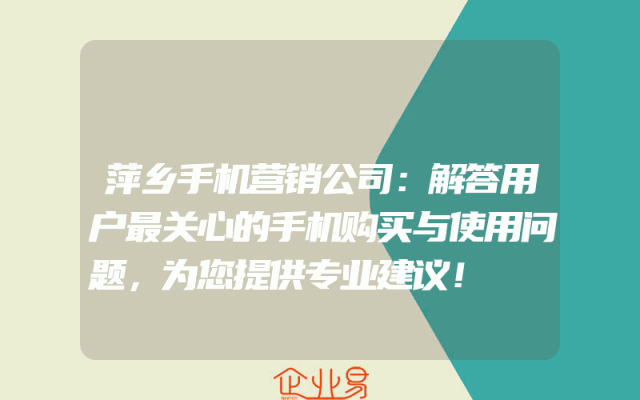 - 萍乡手机营销公司:解答用户最关心的手机购买与使用问题,为您提供专业建议!