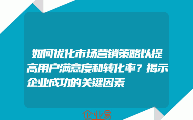 - 如何优化市场营销策略以提高用户满意度和转化率?揭示企业成功的关键因素