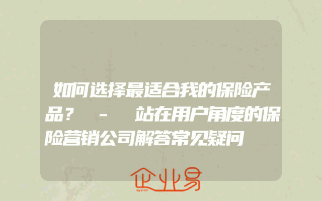 - 如何选择最适合我的保险产品? - 站在用户角度的保险营销公司解答常见疑问