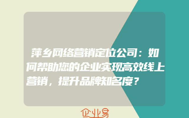 - 萍乡网络营销定位公司:如何帮助您的企业实现高效线上营销,提升品牌知名度?