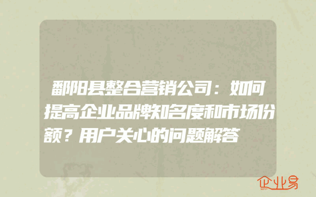 - 鄱阳县整合营销公司:如何提高企业品牌知名度和市场份额?用户关心的问题解答
