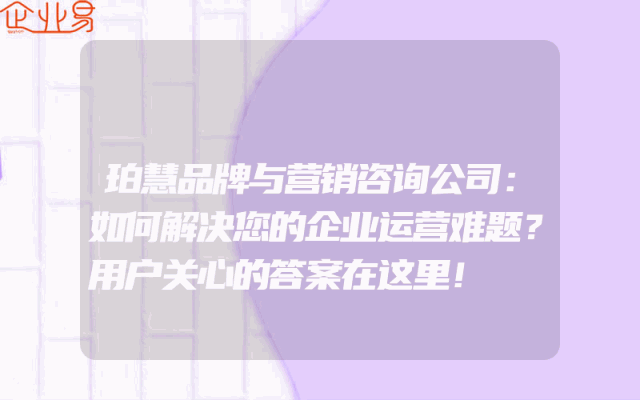 - 珀慧品牌与营销咨询公司:如何解决您的企业运营难题?用户关心的答案在这里!