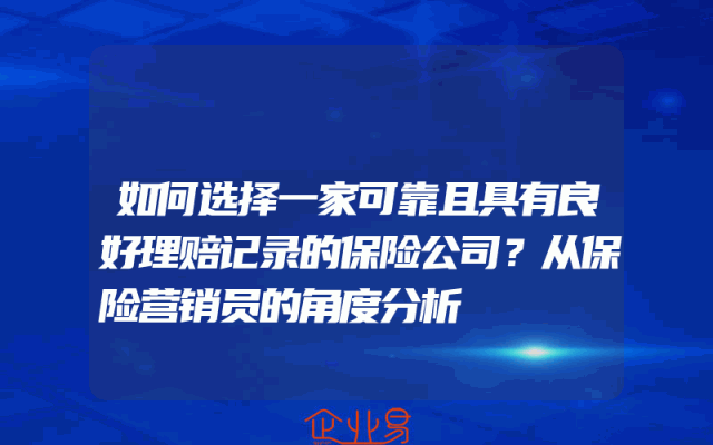 - 如何选择一家可靠且具有良好理赔记录的保险公司?从保险营销员的角度分析