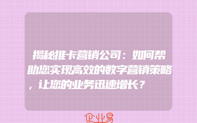 - 揭秘推卡营销公司:如何帮助您实现高效的数字营销策略,让您的业务迅速增长?