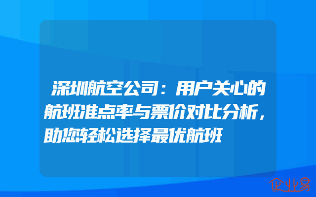 - 深圳航空公司:用户关心的航班准点率与票价对比分析,助您轻松选择最优航班